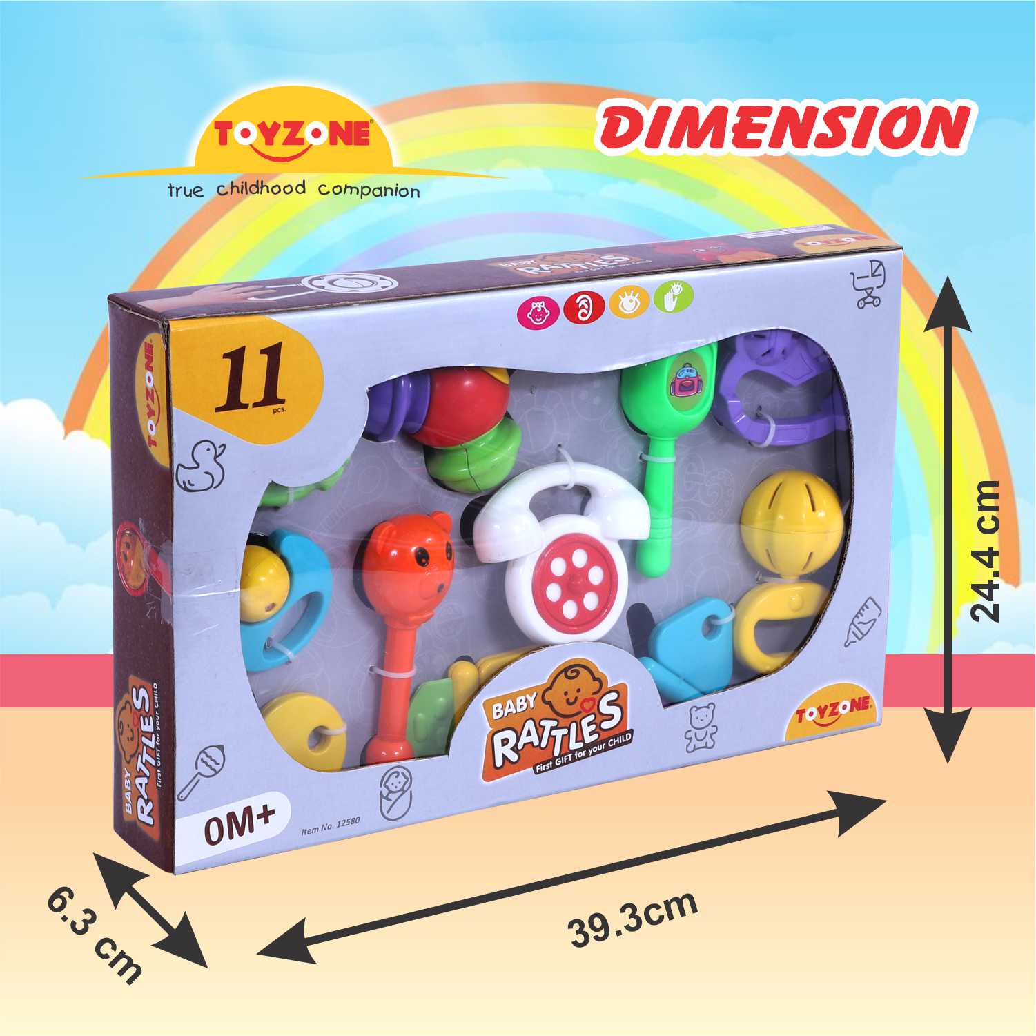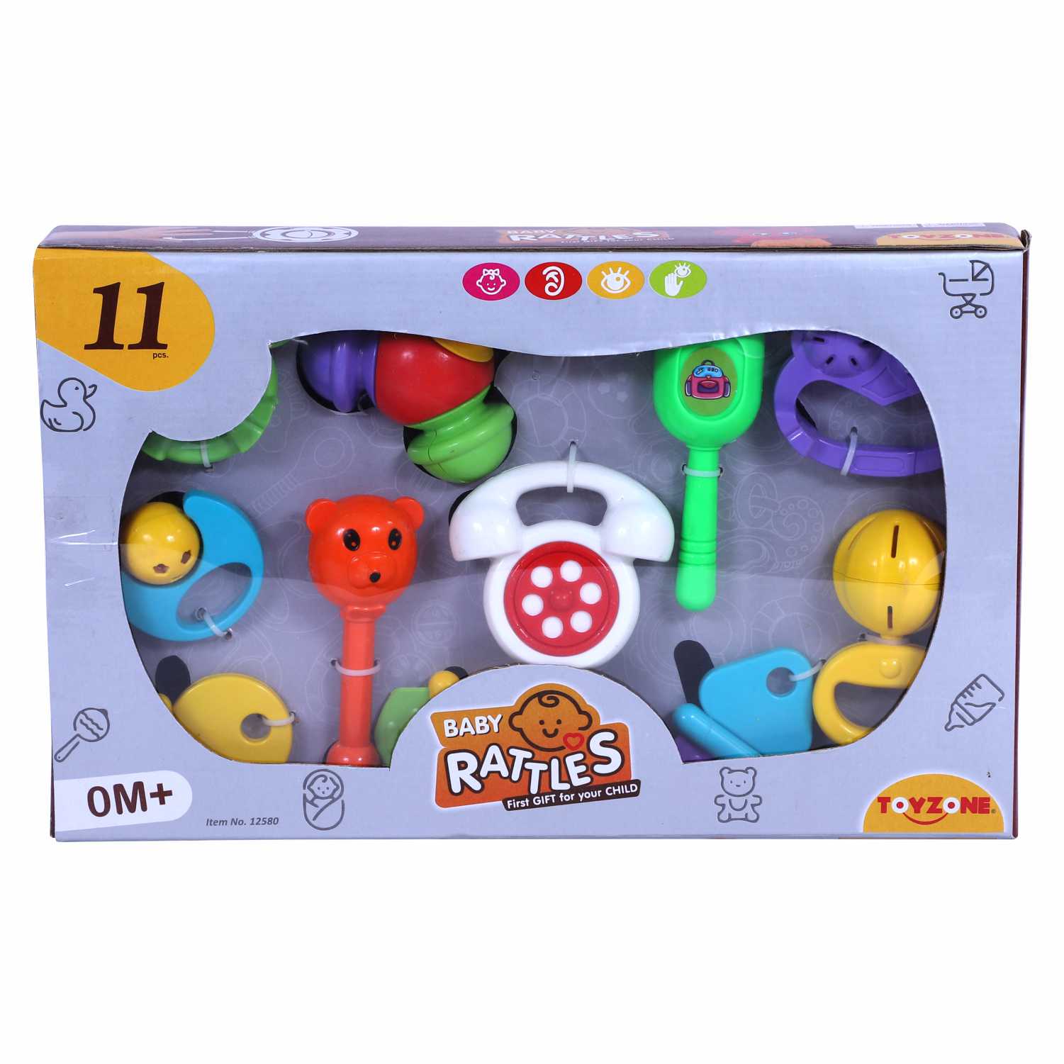 Our Baby Rattle Set is the perfect first toy for infants, designed to stimulate sensory development and fine motor skills with its vibrant colors, gentle rattling sounds, and easy-to-hold shapes. Made from high-quality, BPA-free materials, these lightweight rattles are completely safe for babies to chew and explore. The set features adorable designs with multi-textured surfaces that enhance tactile exploration while providing teething relief. Encouraging hand-eye coordination and auditory development, this rattle set is an ideal gift for baby showers, birthdays, or early milestones, bringing joy and learning to your little one’s playtime.