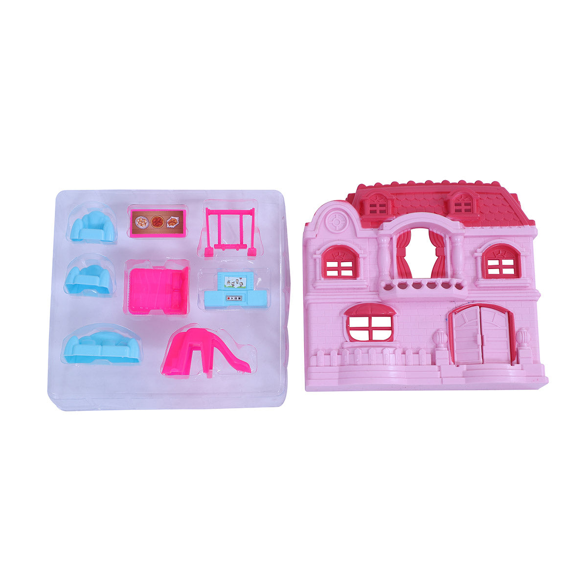 This dollhouse is a delightful and imaginative role-play set designed to inspire creativity in children aged 3 and above. This dollhouse play set comes with beautifully detailed miniature furniture and accessories, allowing kids to create their own little world of fun and adventure. Perfect for encouraging pretend play, this set helps children develop social skills, fine motor skills, and imaginative thinking. The dollhouse features a variety of rooms, each furnished with high-quality, durable pieces that are safe for young children. Ideal for solo play or group interactions, this toy fosters hours of entertainment while promoting learning through role play. Whether used for storytelling or simple playtime, this doll house with furniture will be a cherished addition to any child's toy collection.