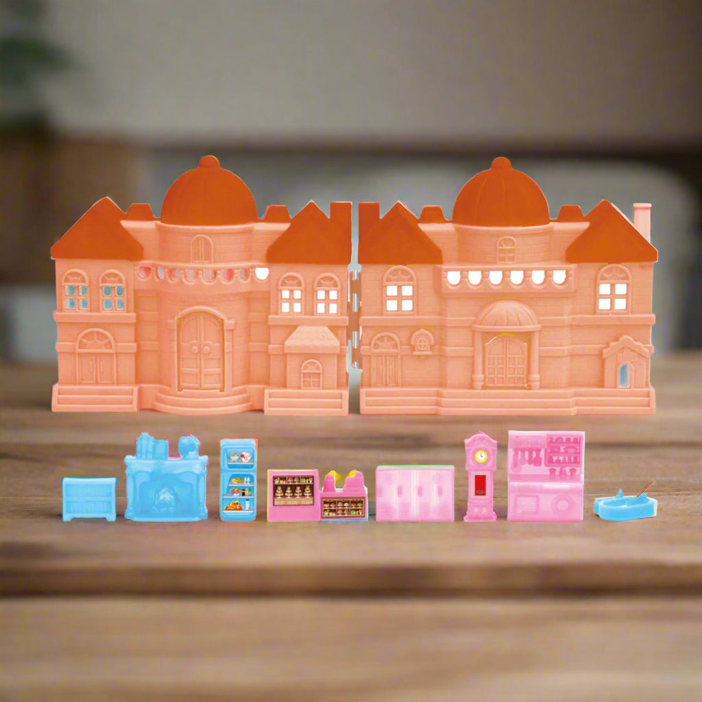 This dollhouse is a delightful and imaginative role-play set designed to inspire creativity in children aged 3 and above. This dollhouse play set comes with beautifully detailed miniature furniture and accessories, allowing kids to create their own little world of fun and adventure. Perfect for encouraging pretend play, this set helps children develop social skills, fine motor skills, and imaginative thinking. The dollhouse features a variety of rooms, each furnished with high-quality, durable pieces that are safe for young children. Ideal for solo play or group interactions, this toy fosters hours of entertainment while promoting learning through role play. Whether used for storytelling or simple playtime, this doll house with furniture will be a cherished addition to any child's toy collection.