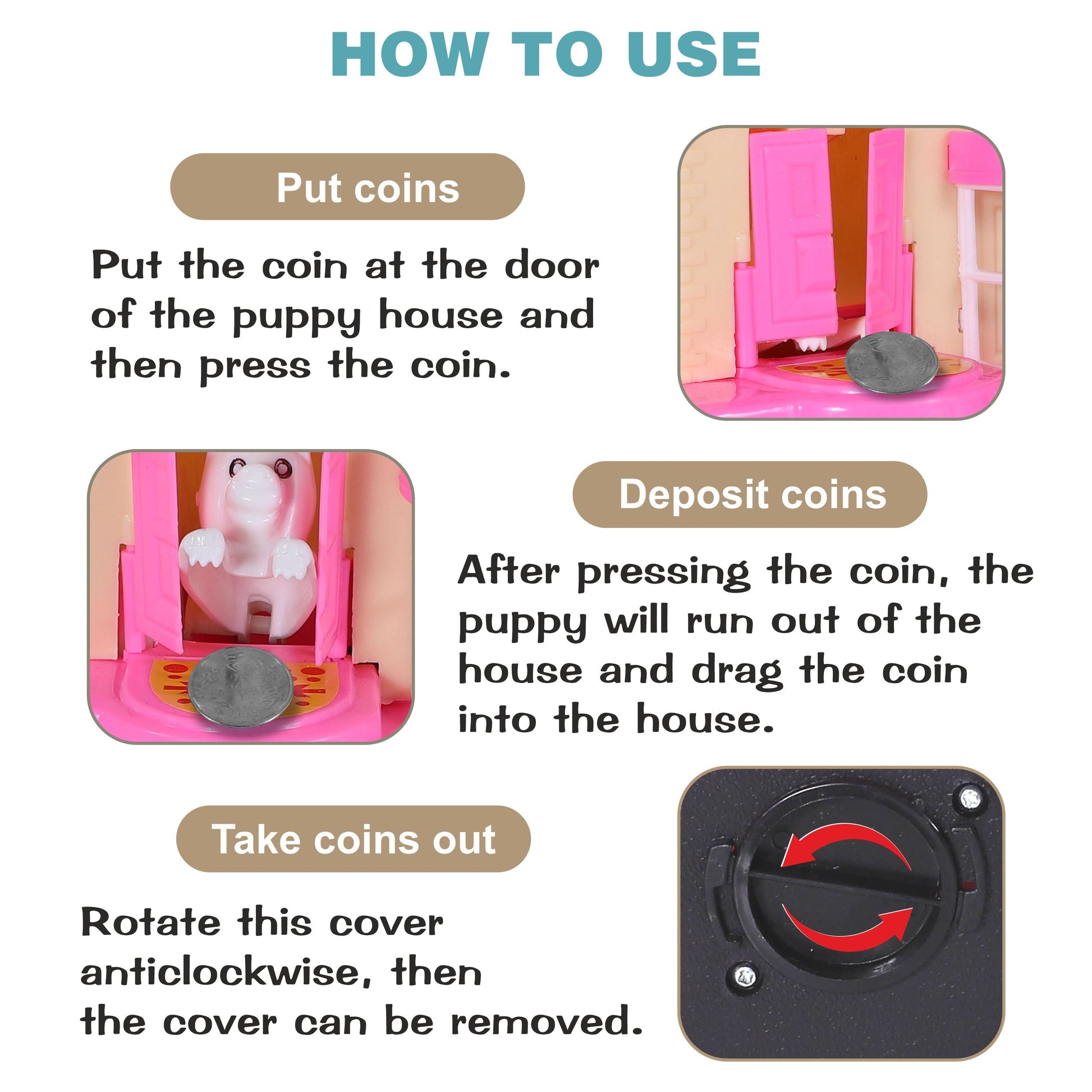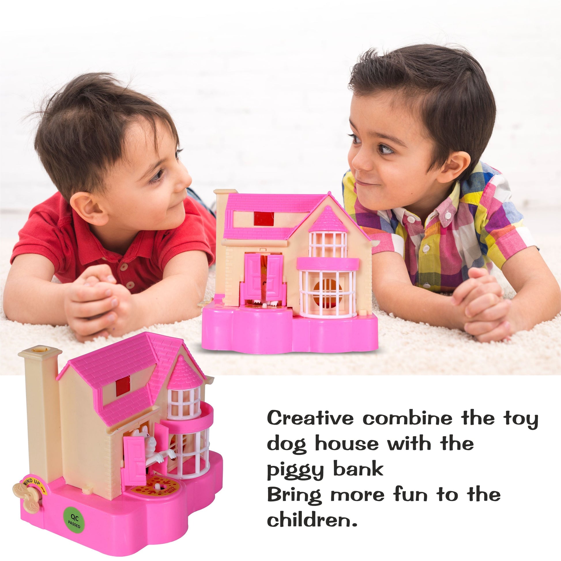 The Puppy House Coin Bank is a fun and interactive savings bank designed for kids 2+ years. This classic puppy house toy offers a playful way for kids to learn the importance of saving money. When you turn the key, the puppy comes out of the house, adding an extra layer of excitement and engagement. Its charming design encourages children to collect and store coins, helping them develop essential skills like hand-eye coordination and financial responsibility. Made with durable materials, this educational toy also serves as a great tool for teaching kids about saving and money management in a fun and engaging way. Whether for boys or girls, this Puppy House Coin Bank is an ideal gift that combines entertainment with valuable lessons, making saving money a delightful experience for young learners.