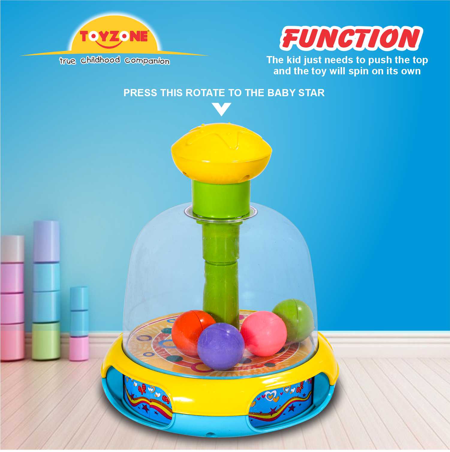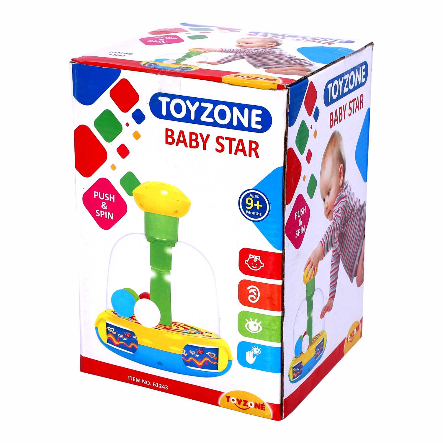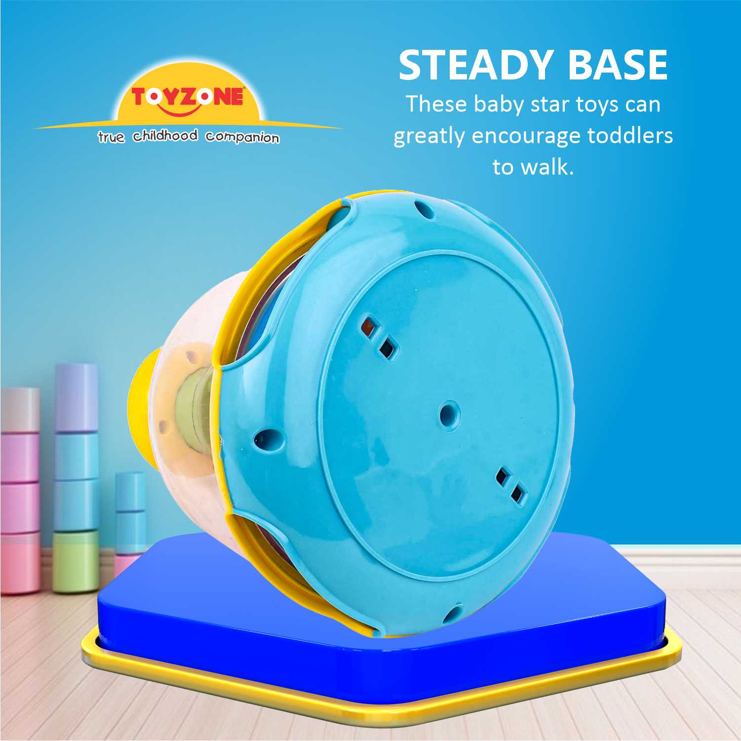 The Baby Star Push & Spin Toy is a fun and engaging toy designed to be played anywhere, thanks to its lightweight and easy-to-hold shape. The comfortable handle makes it simple to grasp, even for taller children, ensuring an enjoyable play experience. This toy helps improve a baby's visual development with its bright, engaging colors, making it perfect for children 11 months and older. The Push and Spin toy encourages cause-and-effect learning and enhances motor skills, offering a playful way for kids to discover how their actions lead to exciting results. Easy for little hands to manipulate, this toy is both educational and fun for young children.