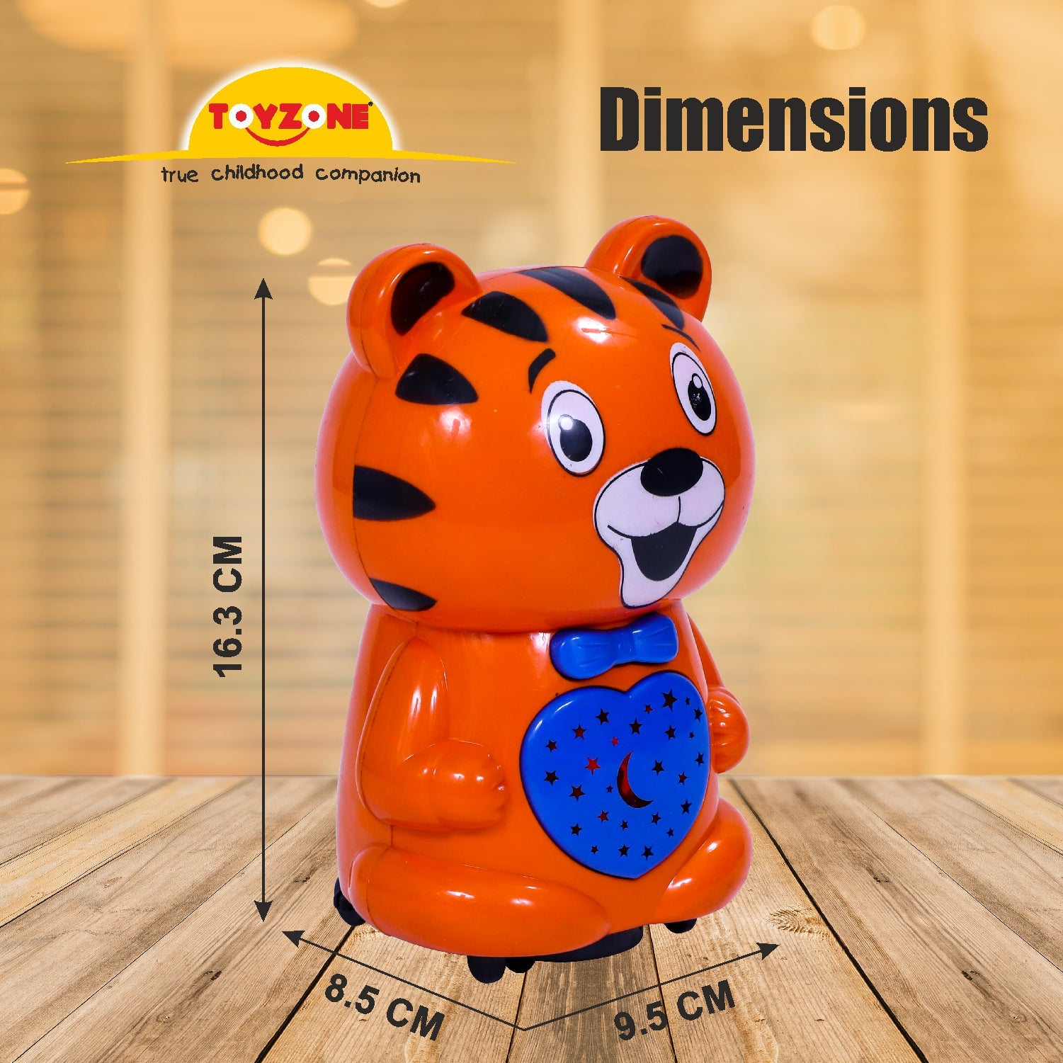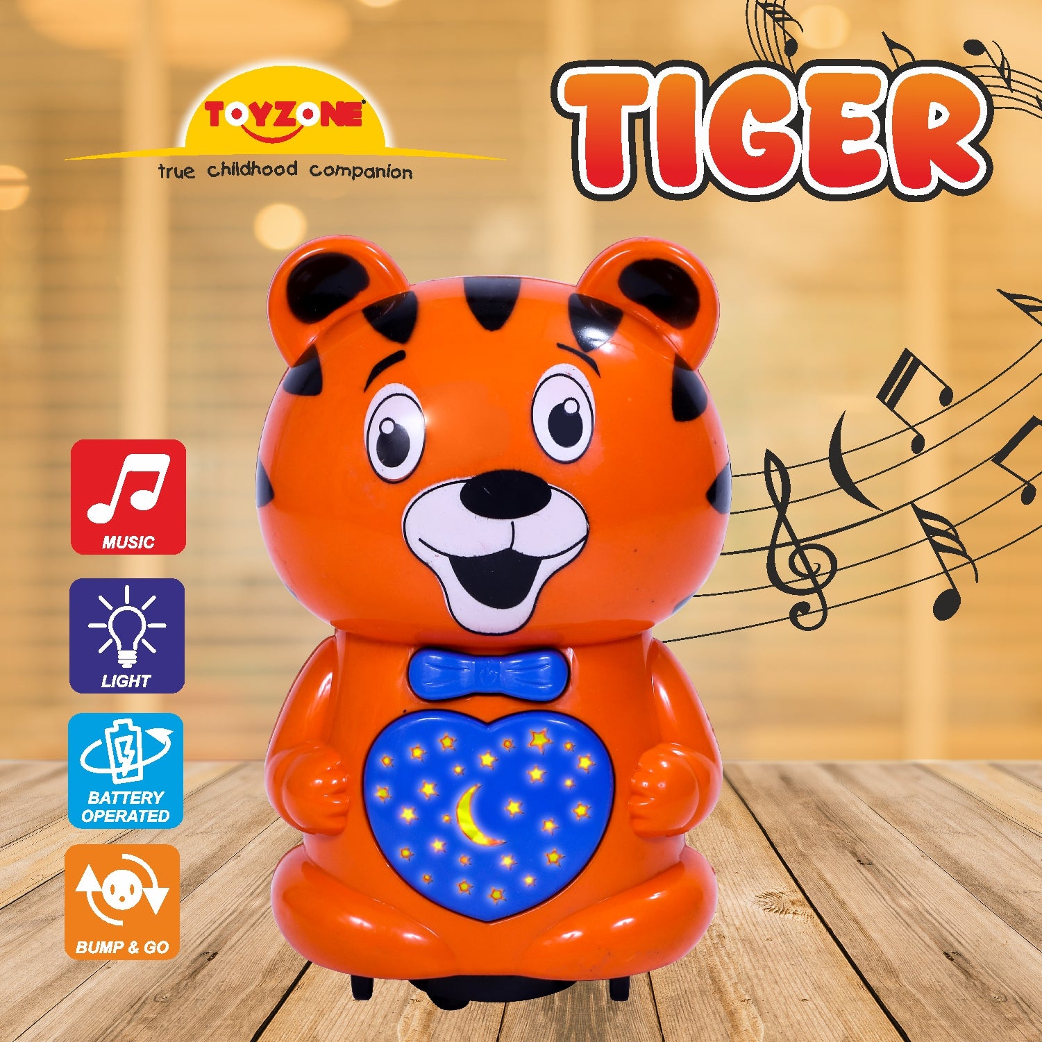 The Tiger Bump 'N' Go Dancing Toy is the perfect entertainment and educational tool for newborns and toddlers. This fun and interactive toy features bright, colorful lights and cheerful sounds that engage your little one’s senses while promoting sensory development. The adorable tiger moves, bumps into objects, and changes direction, encouraging your baby to follow it and enhancing motor skills and hand-eye coordination. Battery-operated for hours of nonstop fun, it’s designed to captivate young minds with its playful movements. Safe, durable, and designed for early learning, the Tiger Bump 'N' Go Toy is an ideal choice for toddlers, making it a wonderful addition to any baby’s playtime routine.
