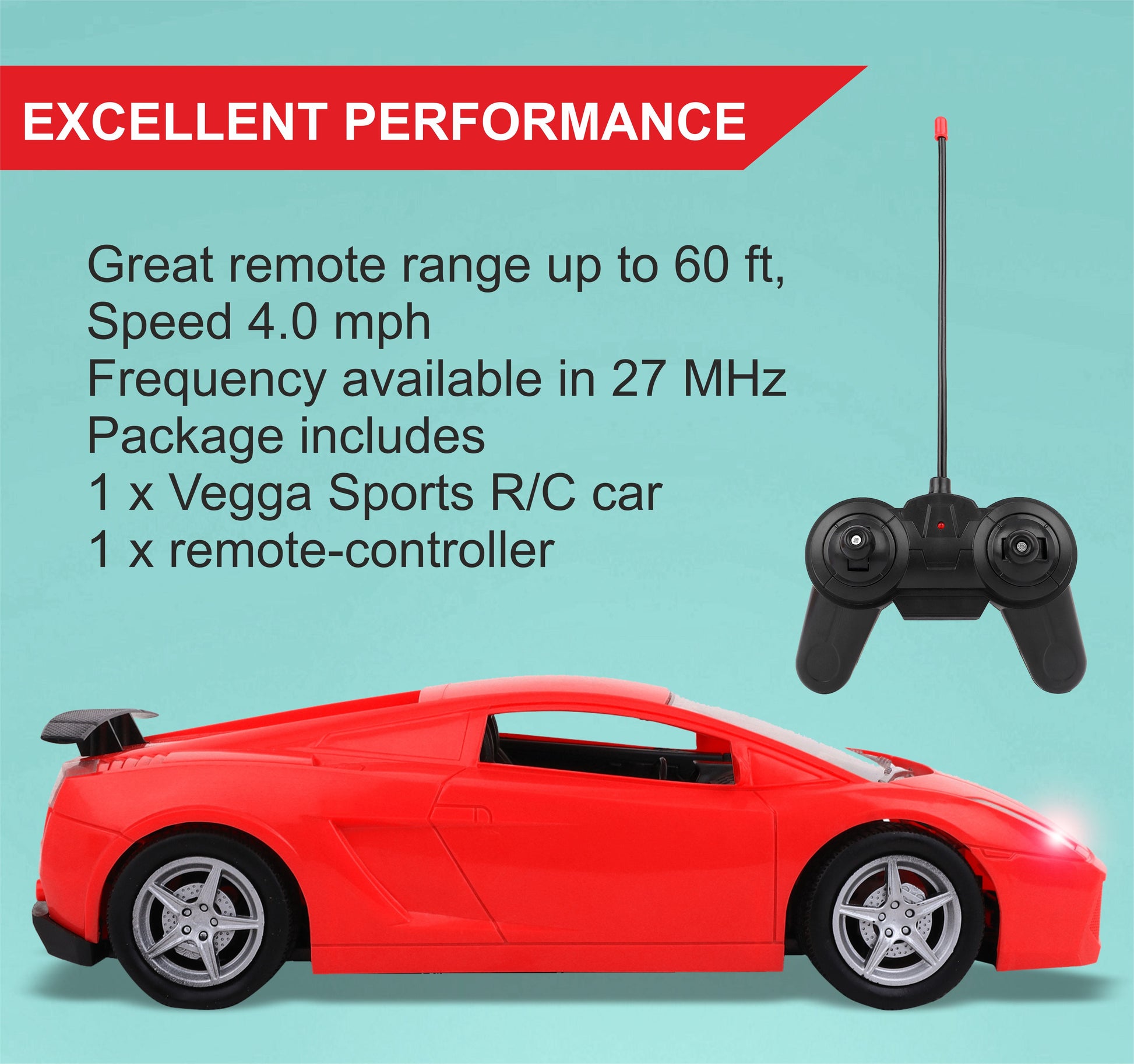 Toyzone Vegga RC Car - Grey is a fully functional, remote-controlled car designed for kids aged 4 and above. With a 1:24 scale, this compact car offers an exciting racing experience. It operates on a 27 MHz frequency, ensuring smooth control and responsiveness. The car is equipped with a luminous headlight, adding a cool and realistic touch while driving. It has an impressive range of up to 25 meters, allowing your child to enjoy extended playtime. The Vegga RC Car also features perfect tire grip, providing stability and traction during movement on various surfaces. The car comes with a battery and charger cable, making it convenient for continuous use. Whether indoors or outdoors, this RC car is designed to offer hours of fun and adventure for young enthusiasts.