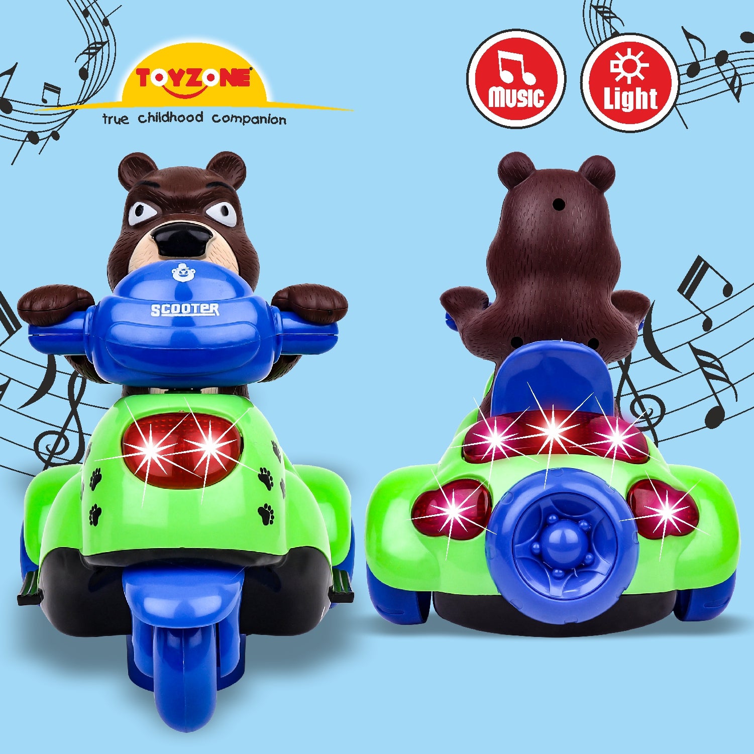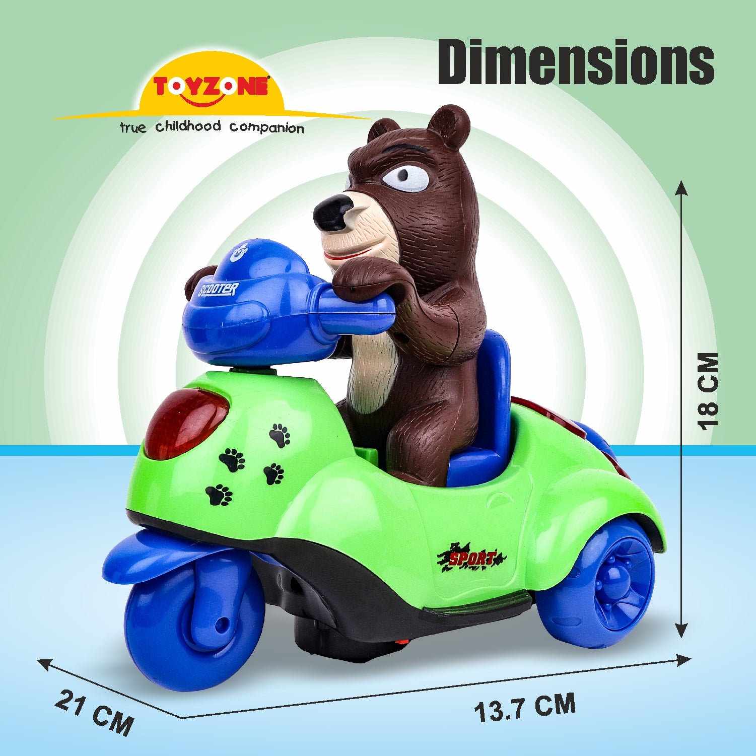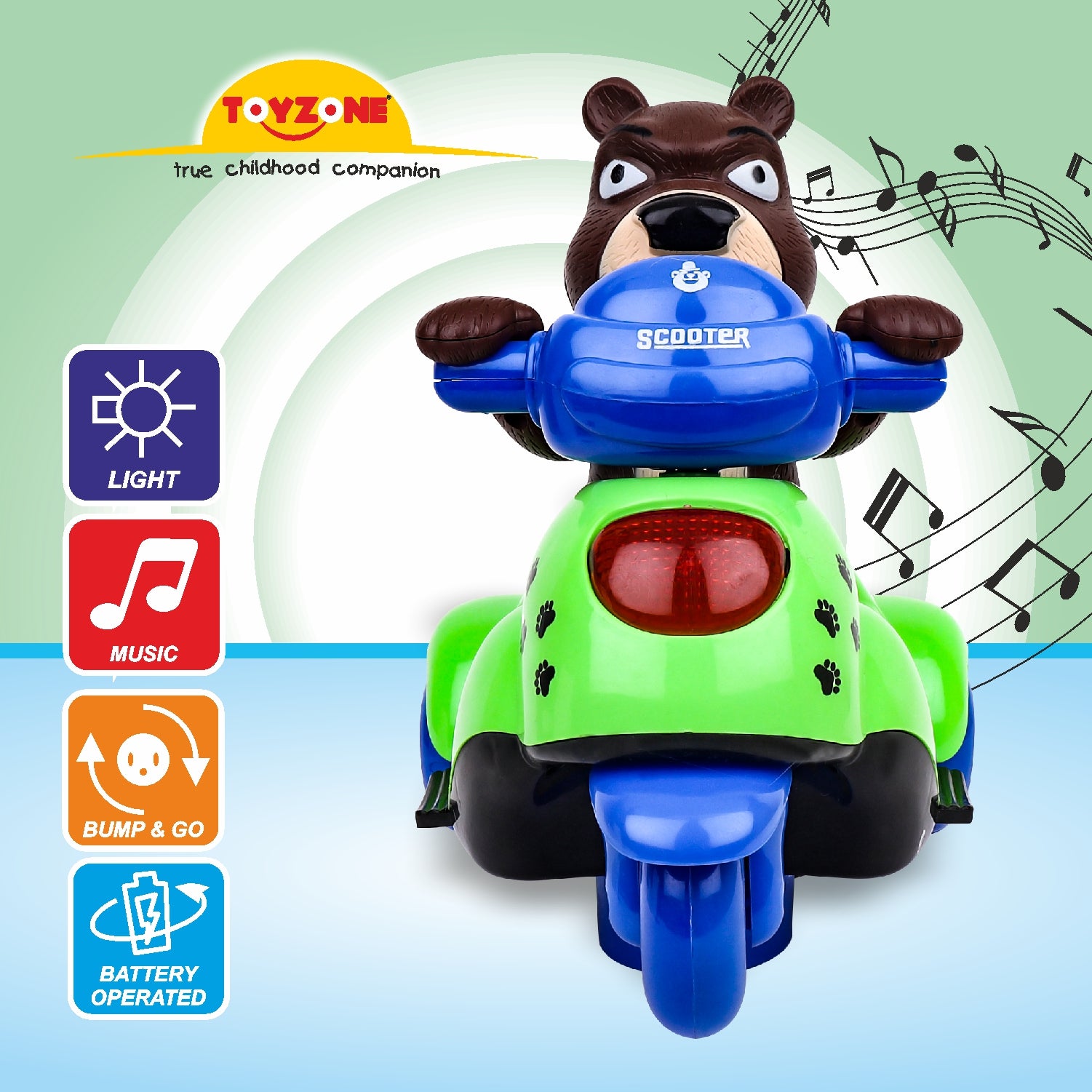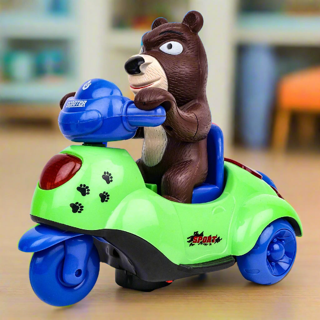 The Bear On Scooter Bump 'N' Go toy is the perfect entertainment and educational tool for newborns and toddlers. This fun and interactive toy features bright, colorful lights and cheerful sounds that engage your little one’s senses while promoting sensory development. The adorable Bear on Scooter moves, bumps into objects, and changes direction, encouraging your baby to follow it and enhancing motor skills and hand-eye coordination. Battery-operated for hours of nonstop fun, it’s designed to captivate young minds with its playful movements. Safe, durable, and designed for early learning, the Bear On Scooter Bump 'N' Go Toy is an ideal choice for toddlers, making it a wonderful addition to any baby’s playtime routine.