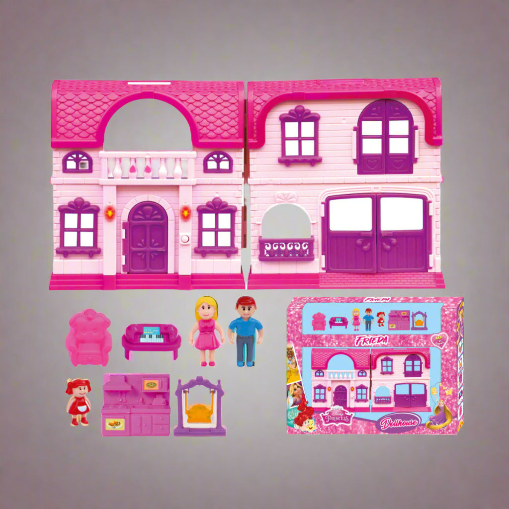 This dollhouse is a delightful and imaginative role-play set designed to inspire creativity in children aged 3 and above. This dollhouse play set comes with beautifully detailed miniature furniture and accessories, allowing kids to create their own little world of fun and adventure. Perfect for encouraging pretend play, this set helps children develop social skills, fine motor skills, and imaginative thinking. The dollhouse features a variety of rooms, each furnished with high-quality, durable pieces that are safe for young children. Ideal for solo play or group interactions, this toy fosters hours of entertainment while promoting learning through role play. Whether used for storytelling or simple playtime, this doll house with furniture will be a cherished addition to any child's toy collection.